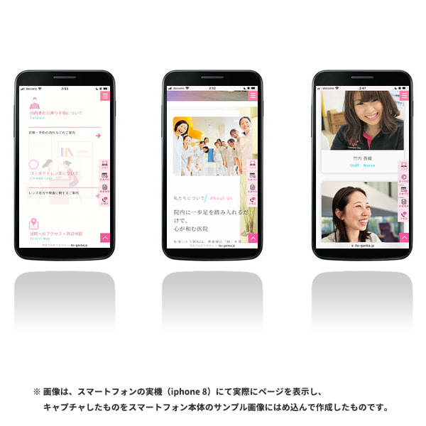 また、一部のカテゴリにはデザイン上の遊びを入れ、単調にならないように、 良い意味で「病院らしくない WEBデザイン」を目指しております。